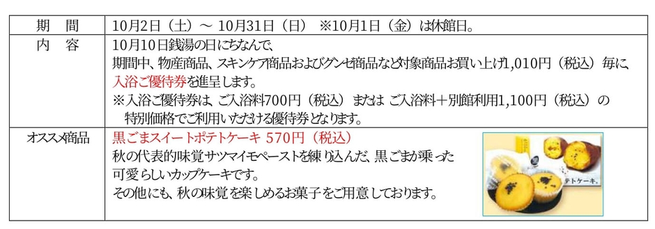 グンゼ株式会社(本社:大阪市北区、社長:佐口 敏康)の連結子会社、グンゼ開発株式会社(本社:兵庫県尼崎市、社長:赤瀬 康宏)が運営する商業施設グンゼタウンセンターつかしんにある天然温泉「湯の華廊」では、物産コーナーに秋にちなんだ商品をご用意し、秋のお買いものフェアを開催します。