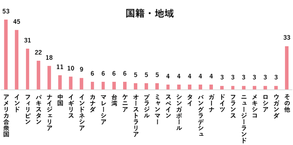 ●「日本以外で働くことを検討している国・地域」は「アメリカ合衆国」と「日本以外は考えていない」が同率1位