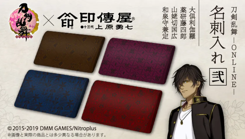 株式会社バンダイ ライフ事業部では、人気PCブラウザ・スマホアプリゲーム「刀剣乱舞-ONLINE-」に登場する刀剣男士をイメージし、日本の伝統革工芸「甲州印伝(こうしゅういんでん)」を伝承する「株式会社印傳屋 上原勇七」とコラボした名刺入れの第2弾『刀剣乱舞-ONLINE-×印傳屋 名刺入れ 大倶利伽羅/薬研藤四郎/山姥切国広/和泉守兼定』(全4種 各9,990円 税込/送料・手数料別途)の予約受付をバンダイ公式ショッピングサイト「プレミアムバンダイ」( http://p-bandai.jp/?rt=pr )にて、2019年6月20日(木)13時に開始いたします。(発売元:株式会社バンダイ)