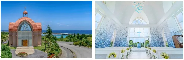 『ホテル シギラミラージュ』に併設された「シギラミラージュ ベイサイドチャペル」は、海を望む絶景のロケーションに建つ、専用エントランス付き独立型チャペルです。宮古ブルーの海をイメージしたチャペル内の3方向に大きな窓を設け、11mもの高い天井から燦燦と降り注ぐまばゆい光の中で、誓い合う2人の忘れられない時を輝かせます。