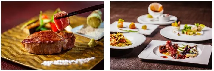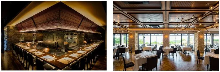 料飲施設: レストラン(しゃぶしゃぶ38席、鉄板焼26席、天ぷらカウンター6席、ステーキグリル44席)、ラウンジ&バー(72席)