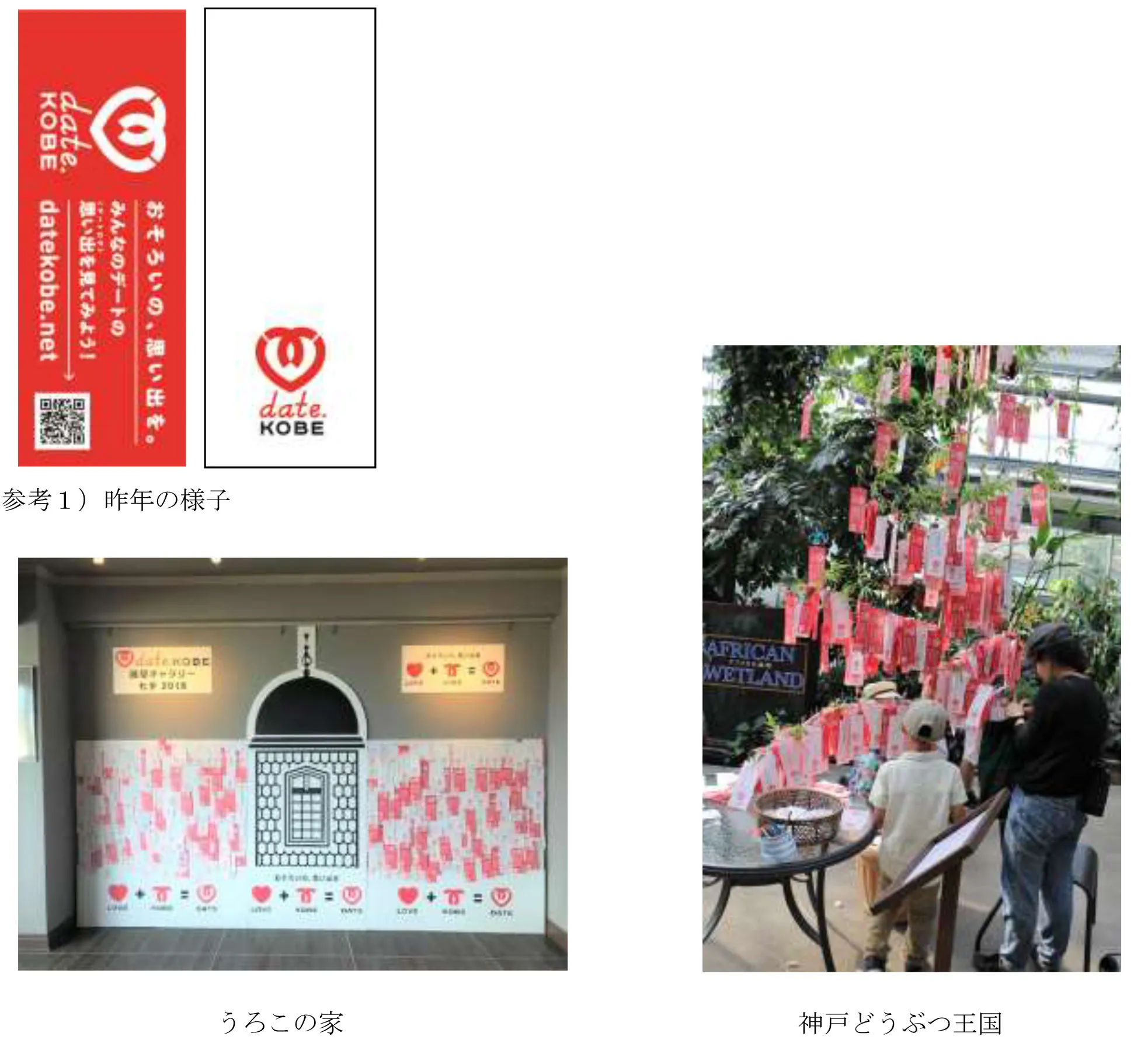 これは、当委員会に所属する神戸市内の13施設において七夕飾りが実施されることから、それに合わせて「date.KOBE」のロゴが入った短冊を各施設に設置し、訪れたカップルやご家族に願いごとを記入していただき、各施設に設置される笹に飾っていただくというものです。
