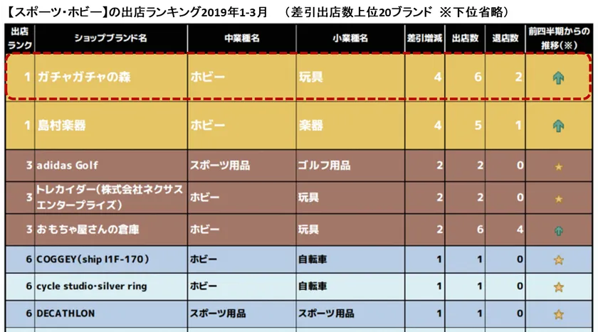 業界動向が浮き彫りに!「業種別出店・退店ランキング」 出店ランキングには市場拡大中のカプセルトイ業界が!