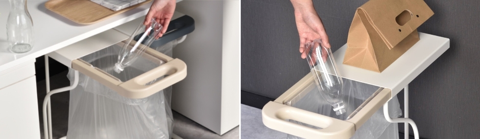filleteリサイクルスタンドは取っ手をスライドさせてゴミをポイッ!と捨てられます。