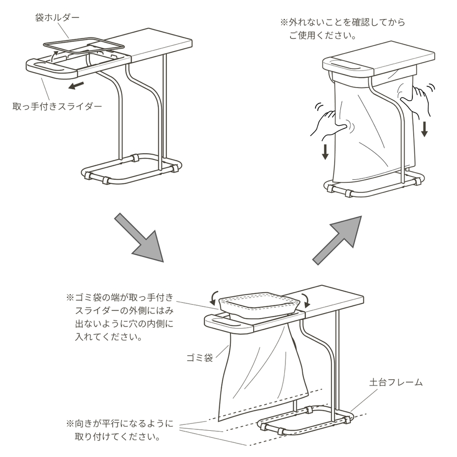※レジ袋を引っ張ってみて、外れないことを確認してからご使用ください。