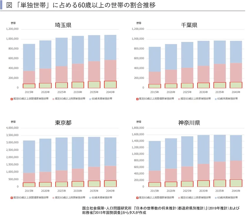(1)居住者の高齢化が進む首都圏の賃貸住宅市場~2040年には60歳以上の単独世帯が90万世帯超へ