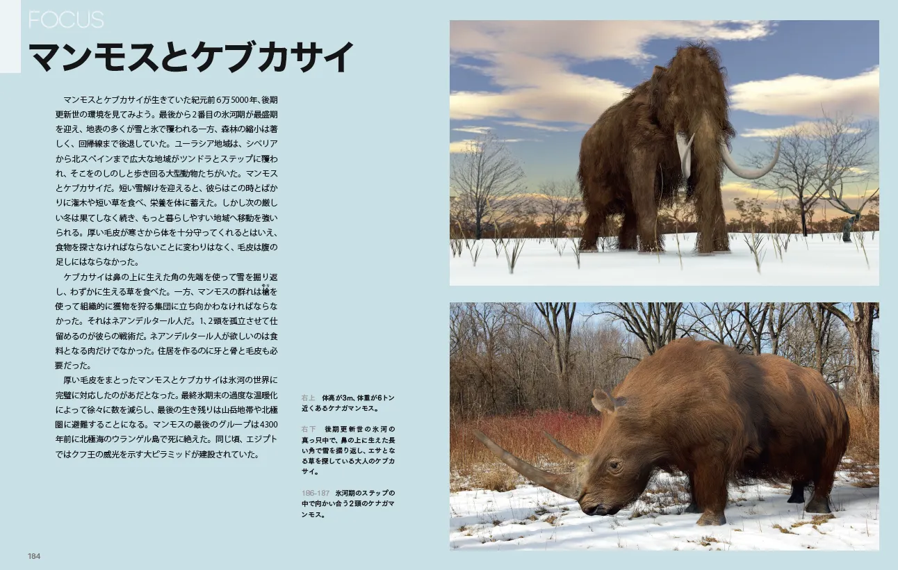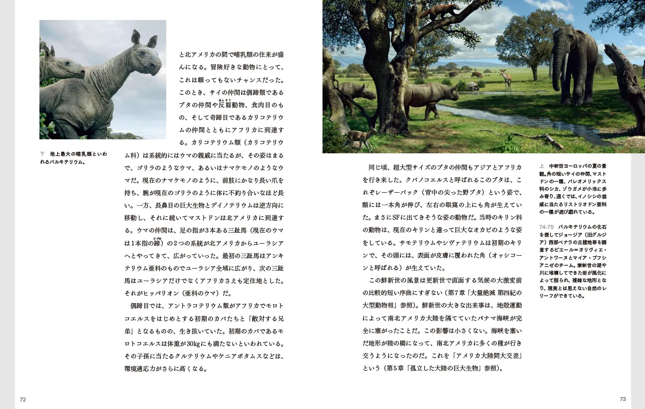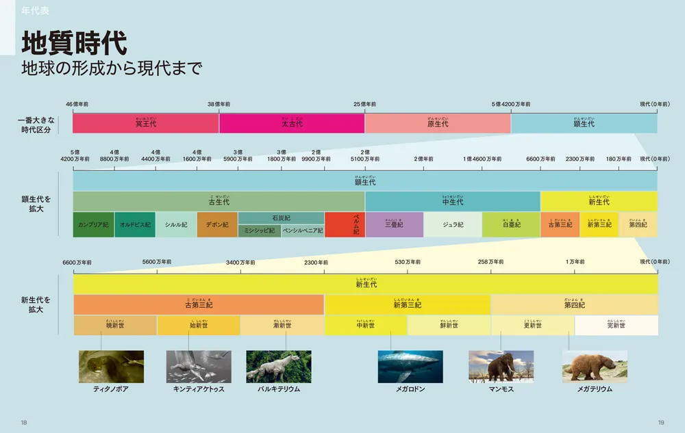 6トンの巨大ナマケモノ、7メートルの巨大サイ、1トン超えの巨大トカゲ、そのほか、マンモスやメガロドンなど、ビッグすぎる古生物をビジュアル化し、恐竜以降から現代までを200点の図版で再現します。巨大種を誕生させた進化の仕組みとは?巨大種が絶滅した原因とは? これらの疑問への答えを、最新研究にもとづき導き出します。