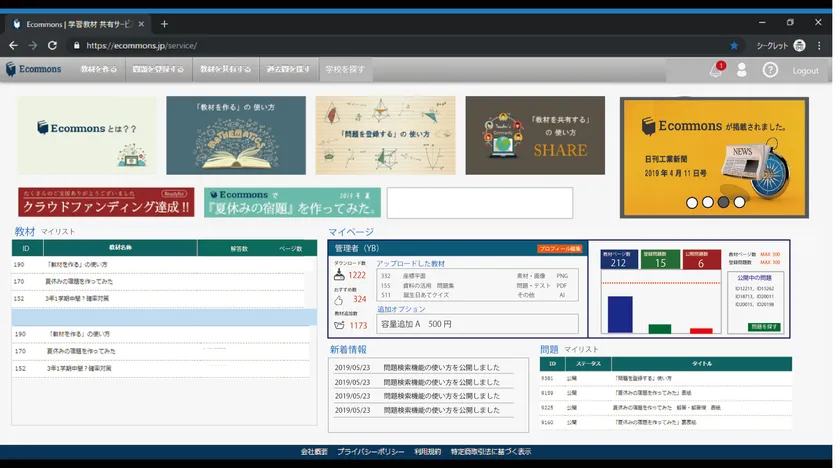 株式会社IC(本社:大阪府大阪市、代表取締役:藪中 孝太朗)は、「問題データベース」+「教材制作システム」+「教材・素材共有スペース」を融合させた教育関係者向けの教材集約コミュニティサイト『Ecommons(イーコモンズ)』を、2019年7月1日からサービス提供開始いたします。