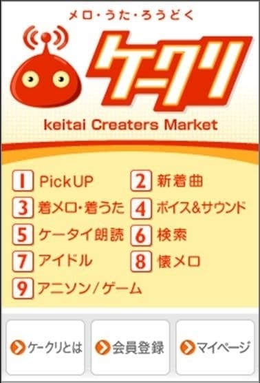 2011年1月24日 10:30音楽関連出版、コンテンツ配信事業を行う株式会社ヤマハミュージックメディア(本社:東京都豊島区高田、代表取締役社長:谷口 恵治)とWebサイト、モバイルサイトコンテンツのプロデュース事業を行う株式会社ディ・キッズ(本社:東京都港区芝、代表取締役:河原木 正行)は、3キャリア公式サイト(「iモード」「EZweb」「Yahoo!ケータイ」)にてクリエーターによるこだわりのケータイ着信音コンテンツを販売するケータイクリエーターズマーケット「ケークリ(旧称:ケータイクリエーターズ広場)」を2010年12月の10周年記念を機にリニューアル致しました。