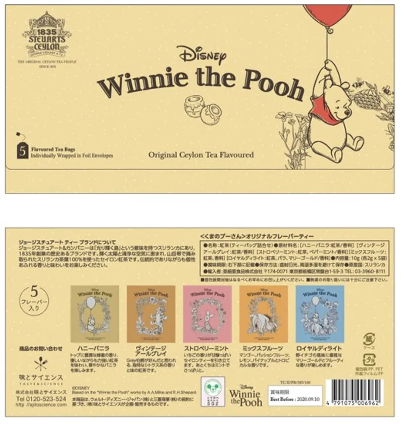 食品商社の株式会社味とサイエンス(本社:東京都中央区、代表:藤本 飛呂、URL: http://ajitoscience.com/ )は、ディズニーとのスペシャルエディション企画として紅茶ブランド【George Steuart Tea(ジョージスチュアートティ)】の「くまのプーさん」の世界観がたっぷり詰まったオリジナル紅茶セットを2019年夏より販売開始いたします。