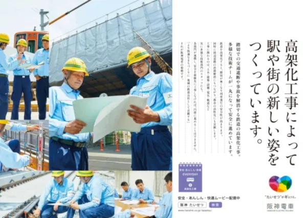 第5弾では、高架化工事に取り組む「工務部技術課 東灘工事事務所」を紹介。この事務所が担当する本線住吉・芦屋間連続立体交差事業は、今年度下り線の高架切替えを予定しており、これにより11か所の踏切が除去されます。この事業を通じ、「高架によって、安全な列車運行と都市の活性化を目指す」社員の想いを発信します。