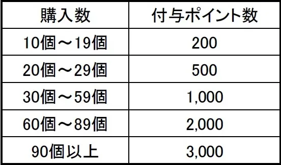 キャンペーン終了時の購入数に基づき以下のポイントを付与いたします。
