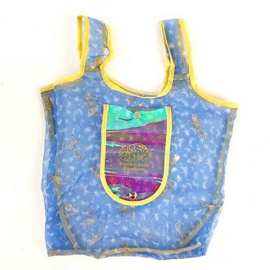 エコバッグには珍しく、オーガンジー素材のエコバッグが登場です。パステルブルーのバッグにカワウソたちのキュートなデザインとともに、ピンクのパイピングが施されたゆめかわ系アイテム♡