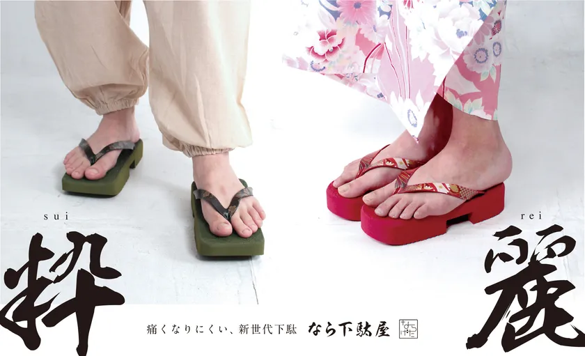 奈良の老舗履物メーカーブランド「なら下駄屋」(運営会社:株式会社一歩、所在地:奈良県御所市、代表:山名 勉)から、なら下駄屋の看板モデル、「ならげた」(2013年度 GOOD DESIGN賞取得)をさらに進化させたモデル、「粋」と「麗」を新発売いたしました。