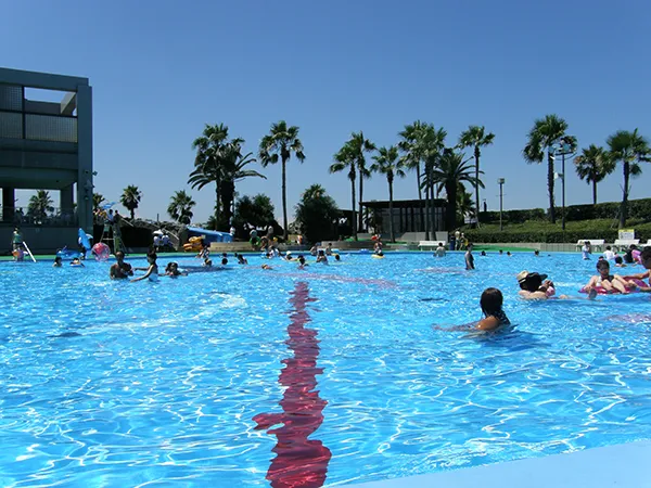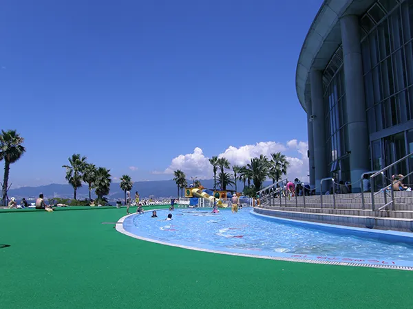 リゾ鳴尾浜は、大阪や神戸から1時間圏内のプールと温泉を備える複合レジャー施設です。