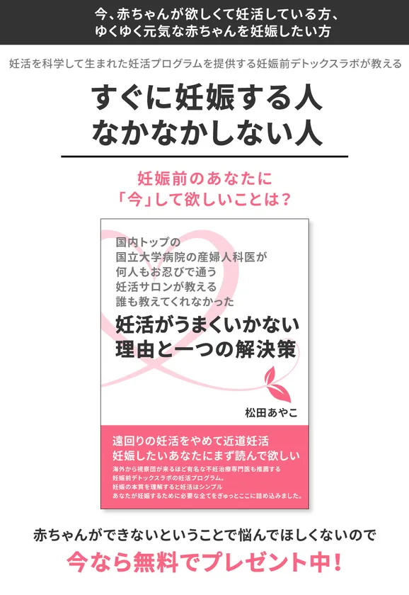 『国内トップの国立大学病院の産婦人科医が、 何人もお忍びで通う妊活サロンが教える 誰も教えてくれなかった ―妊活がうまくいかない理由と一つの解決策―』の 無料プレゼントを開始
