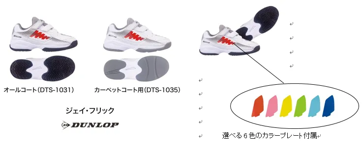 また、ジュニア用のテニスシューズ「J(ジェイ)-FLICK(フリック)」シリーズを2019年9月に新発売します。メーカー希望小売価格6,200円+税です。6色のカラープレートが付属されており、好きなカラーをカスタマイズできます。また、成長する子供の足に配慮し、サイズの微調整が可能な「サイズアップインソール※」で簡単にワンサイズアップすることができます。