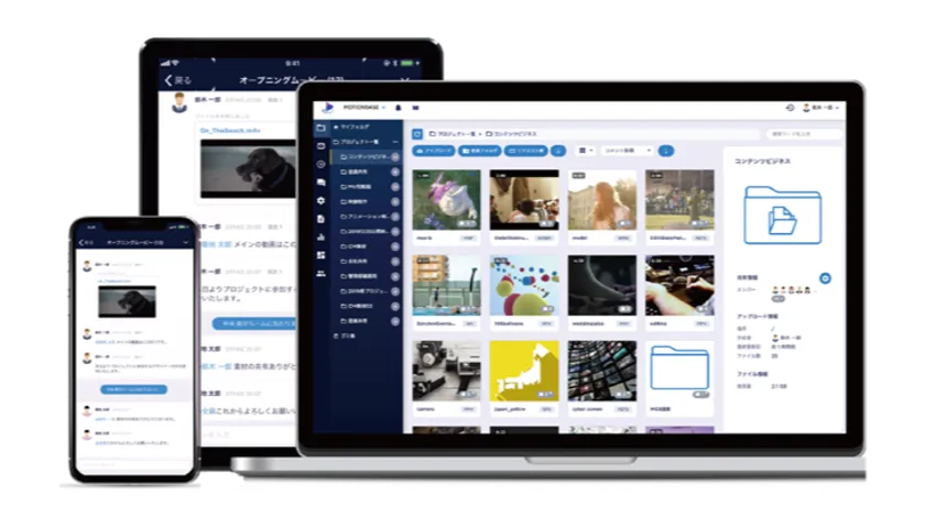 プロジェクト権限に紐づいたチャットやファイル共有の仕組みを提供しているので、情報やデータの共有範囲を管理者がコントロール可能。データ共有とコミュニケーション機能を内包したプラットフォームで、発売前の商品情報や作品情報など機密情報を扱うことが多い映像・放送・広告業界で働くプロ向けのサービスとして本年4月3日に提供開始しています。