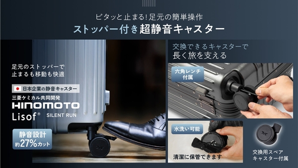 <壊れても安心。交換可能な究極の静音キャスターで旅が変わる>