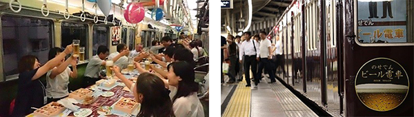 能勢電鉄では、7月23日(火)~25日(木)の3日間、「のせでんビール電車」を運行します。今回は「7201編成車」(4両編成)の車内で、キリンビール神戸工場で製造した、新鮮なキリン生ビール(一番搾り)と、地元の新鮮な食材を一部使用した「のせでんオリジナル多田駅弁当」と共にお楽しみいただきます。