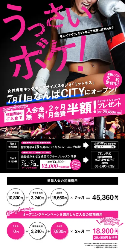 株式会社グッドウェーブ(住所:渋谷区、代表取締役:馬場 大介)は、女性専用キックボクササイズスタジオ「MITTNESS(ミットネス)」なんばCITY店を2019年7月3日(水)にプレオープン、7月11日(木)にグランドオープンいたします。
