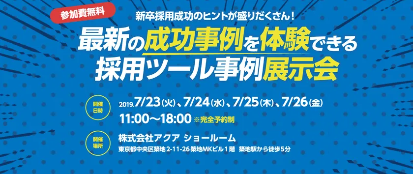 最新の採用ツール事例を体験できる! 採用ブランディングツール事例展示会を 人事採用担当者向けに7/23-7/26 東京築地で無料開催