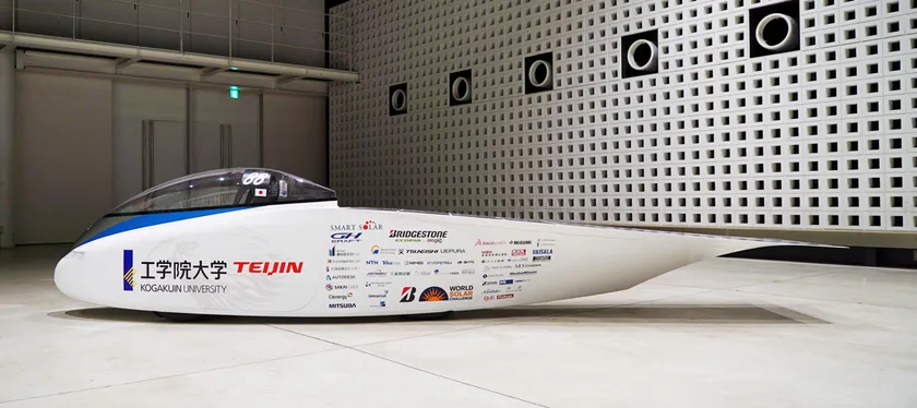 ●『工学院大学ソーラーチーム』がサポート企業から支援を受けた最先端素材・技術や、学内で開発された日本初のナノテク塗装などを搭載した5号機となる新車両を初公開。