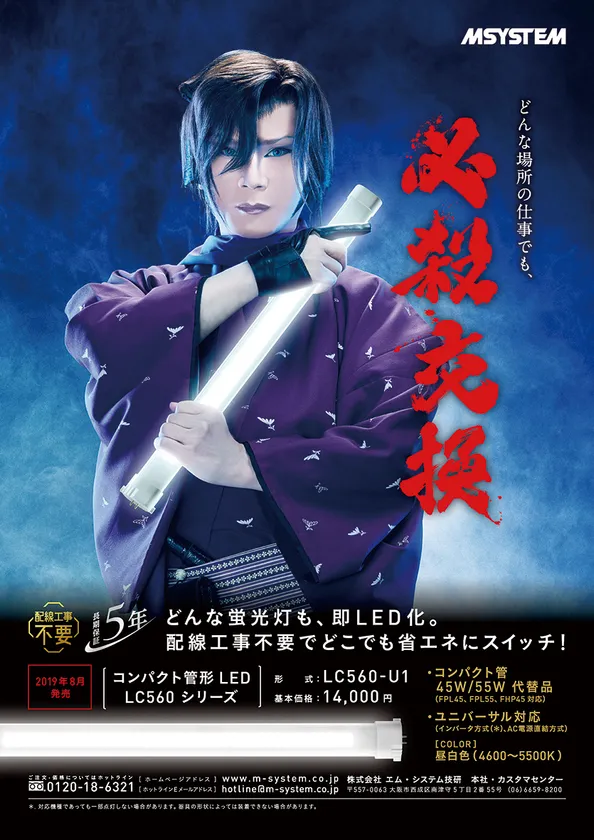 株式会社エム・システム技研(本社:大阪市西成区南津守、代表取締役社長:宮道 三郎)は、既存の照明器具に配線工事不要*1で使用できるLED照明に、「コンパクト管形LED LC560-U1」をラインアップに加え2019年8月から販売を開始します。詳細は【製品情報】をご覧ください。目標販売本数は年間3万本です。また、販売に合わせて8月より雑誌広告を展開します。