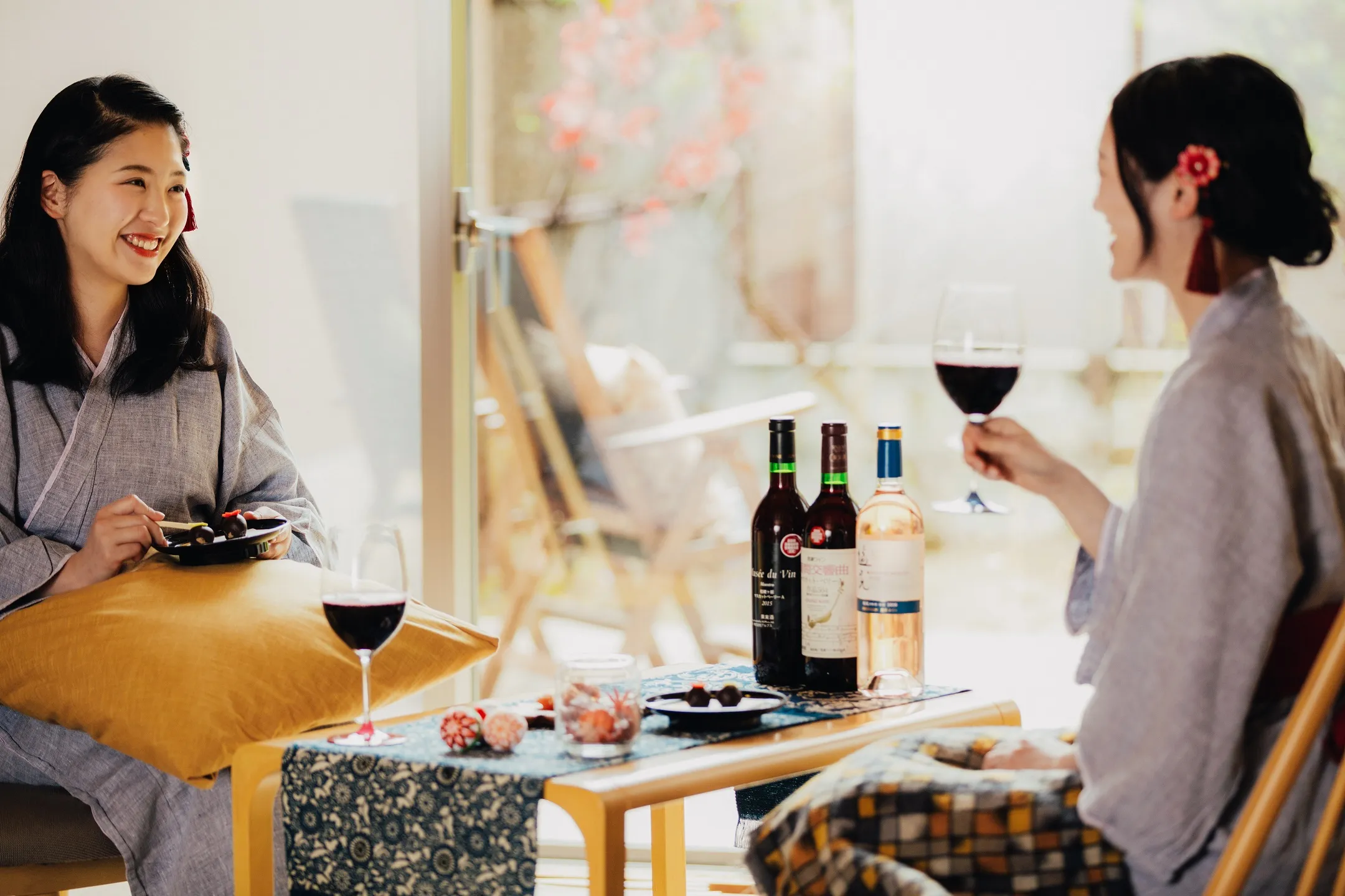 界 松本では、ヌーヴォーがリリースされる11月の2週間限定で、「和ヌーヴォーでほろ酔い逗留」プランを販売します。桔梗ヶ原は松本市に隣接する塩尻市にあり、信州にある4つのワインバレー(ワイン産地)の中でも日本ワインの先進地として知られています。界 松本では常時50種類以上の桔梗ヶ原ワインを取り揃えており、秋限定でヌーヴォー3種類がワインリストに加わります。本プランでは、露天風呂とゆったりとしたテラスを備えた客室で、好みのヌーヴォーを、伝統工芸の木曽漆器で作られたオリジナルグラス、オリジナルワインホルダー、木曽檜のワインクーラー、木曽漆の器に盛りつけたおつまみセットとともに楽しむことができます。
