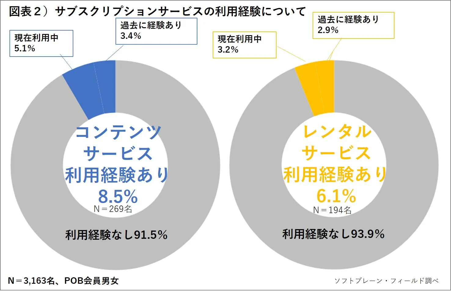 フィールド・クラウドソーシング事業を展開するソフトブレーン・フィールド株式会社(本社:東京都港区、代表取締役社長:木名瀬博)は、「マルチプルID-POS購買理由データPoint of Buy(R)」(以下POB)アンケートモニター(N=3,163名、20代~60代男女)を対象に「サブスクリプションサービスの利用に関するアンケート」を2019年6月7日(金)~6月10日(月)にかけて実施をしましたので、ご報告いたします。(調査概要6P参照)