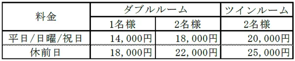 ※表記の料金にはいずれも1泊室料・宿泊税および2019年10月に改定が予定されている10%の消費税が含まれます。