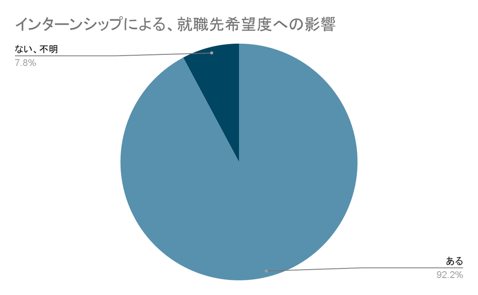 92%が就職先希望度への影響あり!本選考前のインターンシップの重要性