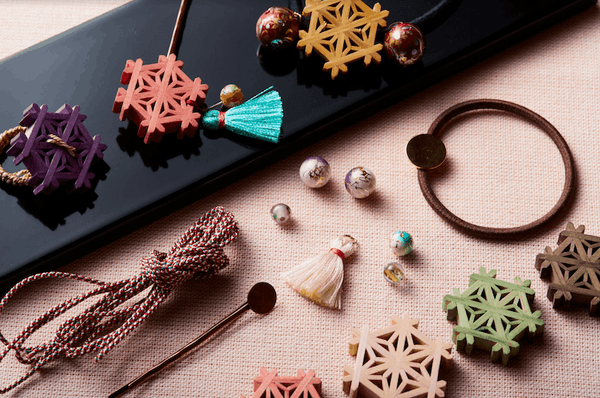 江戸時代、日光東照宮の木工職人から生み出されたという「鹿沼組子」。接着剤を使わず、木を組み合わせて作るのが特徴です。界 日光では4色の組子を使いアクセサリーを作りながら、技法の体験ができます。
