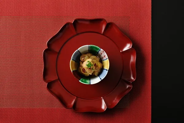 温泉養生で長期滞在しても飽きない充実のラインアップです。台湾で親しまれている食材と日本料理の調理技法をかけあわせた、新たな食の魅力に出会うことができます。たとえば、チョウザメの南蛮漬け。油でいったん揚げて旨味を凝縮させることで、淡泊な味わいに変化をもたらします。酸味のきいた南蛮だれに漬けて、さっぱりと仕上げた味わいは、温暖多湿な台湾の気候とも相性抜群です。調理技法だけでなく、器にも和の要素を取り入れました。九谷・備前・有田といった日本が世界に誇る陶磁器に盛られた日本料理は、五感に響き渡ります。