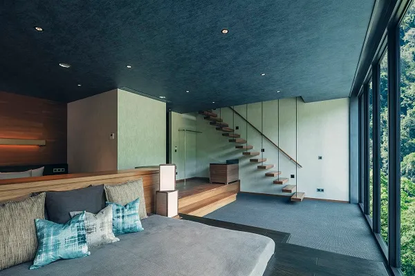台湾の人は温泉好きが多いと聞いています。台湾で温泉をテーマにした「星のや」流のリゾートを計画するにあたり、まず大切にしたのは台湾と日本の温泉文化の違いです。例えば、多くの台湾の温泉では、水着を着て入りますが、これは日本の温泉文化では開放感の喪失となり、温泉の醍醐味を失いかねないものです。そして、いかに風景を愛で、自然の風を楽しむかも大切な魅力の一つです。大浴場は、外の景色を絞り込むように窓を設けた日本的な木質系の内湯と、斬新なデザインの露天風呂を楽しめます。繊細な心遣いや、自然との対峙の仕方などを感じてもらえたらと思います。客室には全室半露天風呂を設け、ほとんどの客室がメゾネットです。風を感じながらゆっくりと温泉に浸かる時間と、リビングや寝室でくつろぐ時間、2つの時間の楽しさを感じてほしいという思いから、浴室などの水回りエリアを切り離して独立フロアとしています。