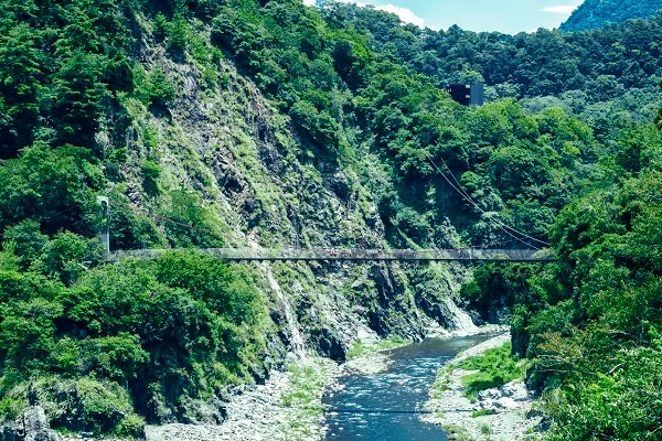 谷關は 3,000メートル級の山々が連なる台湾中央山脈の麓にある温泉地です。台湾中部を流れる河川「大甲渓(だいこうけい)」が削ってできた谷あいに温泉が湧出しており、日本の温泉地のような懐かしさがある一方で、今もなおダイナミックな自然が残っています。星のやグーグァンの裏手には全長1,300メートルの遊歩道があり、都会の喧騒を離れた非日常感あふれる環境に身を置いて散策を楽しめます。遊歩道の途中には谷關を一望できる展望台があり、春は桜、秋は紅葉と、季節によって異なる表情を見ることができます。