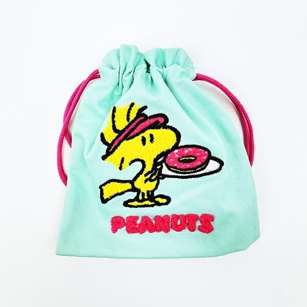 次はウッドストックをフューチャーしたデザインのミントグリーンアイテムです。こちらは ウッドストック パフプリントミニポーチ です。