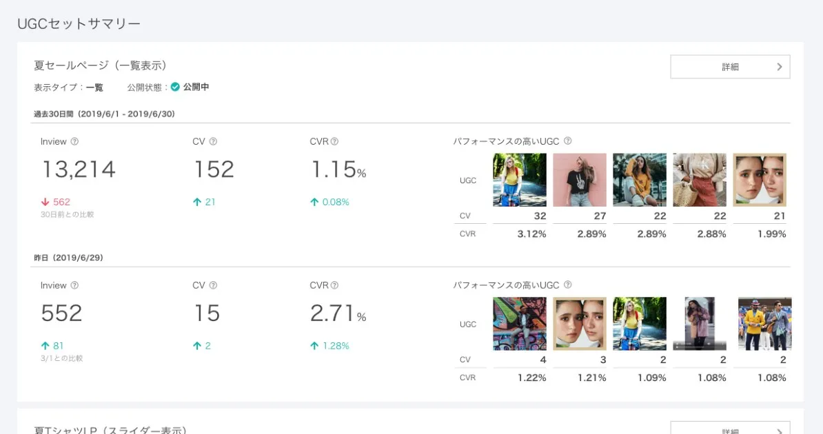 UGCごとの効果を比較するA/Bテスト機能や、ECサイト上の商品ごとに指標を確認できる画面を新たに追加し、データに基づく効果測定をより直感的に行えるようになりました。