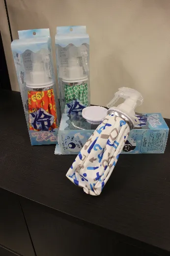 今年は、ゴルフ場利用者の声から生まれた“霧吹きタイプの氷のう”が登場。空け口を霧吹きノズルに付け替え可能になり、氷が解けた冷たい水を霧吹きでふりかけられます。