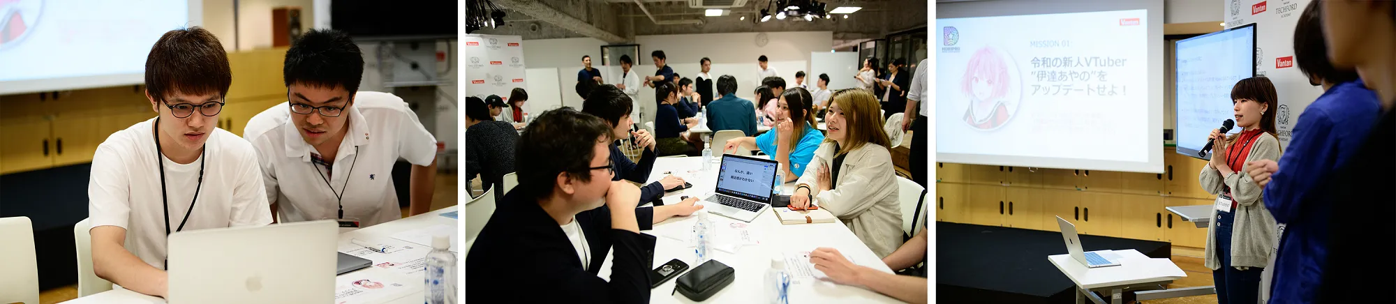 本イベントでは、バンタンテックフォードアカデミーの最大の特長である、学生が企業の課題をヒアリングし、企画・提案・開発までを行なう「プロジェクト型学習」を、現役の中高生を含む学生24人が体験。4つのチームに分かれ、株式会社ホリプロデジタルエンターテインメントに所属する新人VTuber“伊達あやの”の更なる成長戦略を企画し、プレゼンテーションを通してホリプロデジタルエンターテインメントに提案しました。