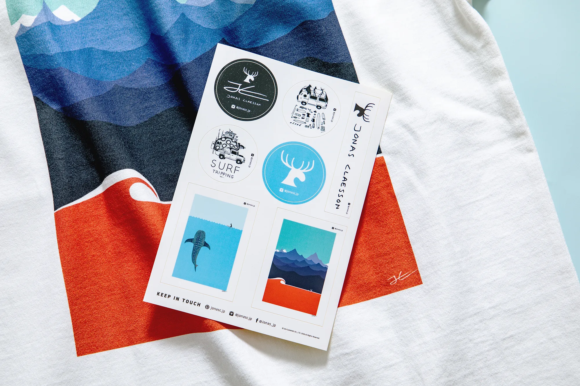 スウェーデン・ストックホルムの出身で、現在はオーストラリア在住のイラストレーター、ジョナス・クレアッソン。幼い頃に北欧で慣れ親しんだ自然や動物たちと現在のシドニーでのサーフィンやキャンプ・ライフといったライフスタイルをモチーフに、美しい自然と動物、そして人間が調和の基に融合したユニークな世界が描いている。