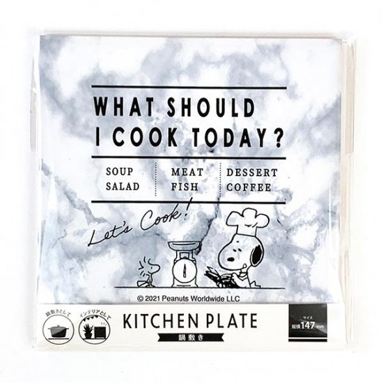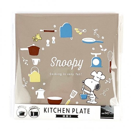 キッチンやダイニングに、オシャレなキッチンプレートはいかがでしょうか。スヌーピーのデザインで、鍋敷きとして使用できるほかインテリアにもなるアイテムです。キッチンになじむベージュや大理石風のタイルなので、使い勝手も抜群ですよ。