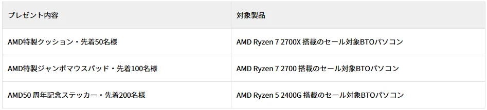 期間中、パソコン工房通販サイトで対象パソコンをお買上げでお買い上げいただくと、先着で合計350名様にAMD特製のレアなアイテムがもらえるプレゼントを実施中です。