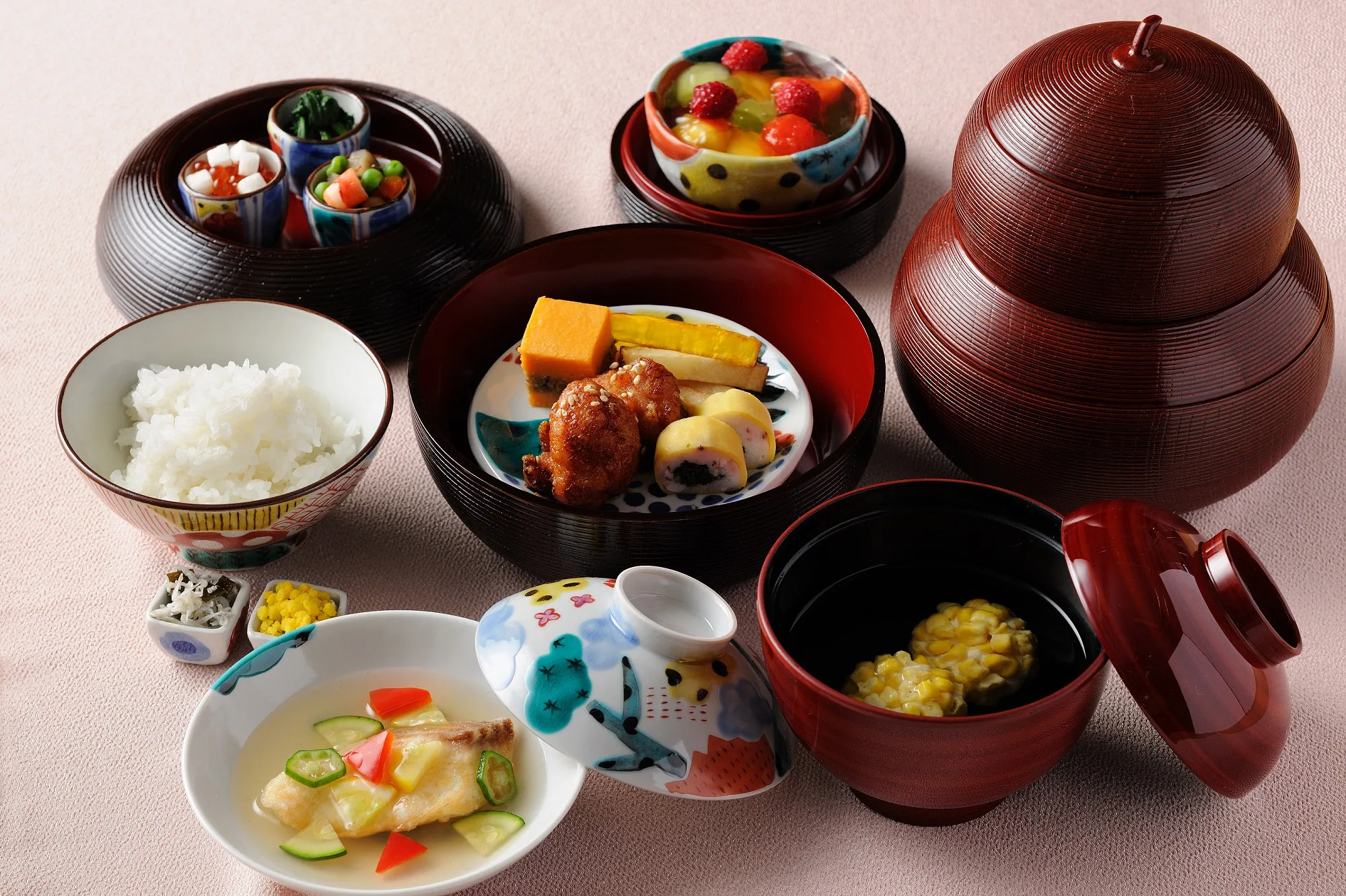 乾杯ドリンク、朝食、お祝い茶会用生菓子