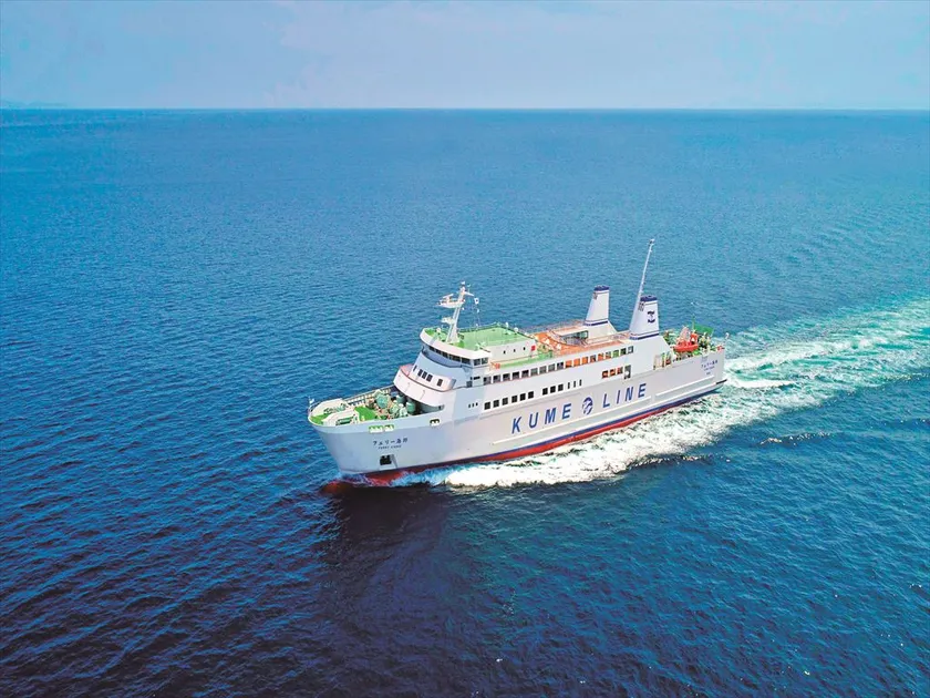 那覇と久米島を結ぶフェリーは、慶良間諸島の絶景を見ながら、非日常的な時間が流れる約3時間の船旅です。飛行機では味わうことのできない、ぜいたくな時間を楽しむことができます。
