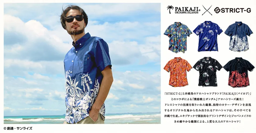 株式会社バンダイ アパレル事業部では、ガンダムの世界観を取り入れたアパレルコンセプトショップ「STRICT-G(ストリクト ジー)」にて、沖縄発純国産アロハシャツメーカー“PAIKAJI(パイカジ)”と今年40周年を迎える「機動戦士ガンダム」との初のコラボレーション商品を発売します。
