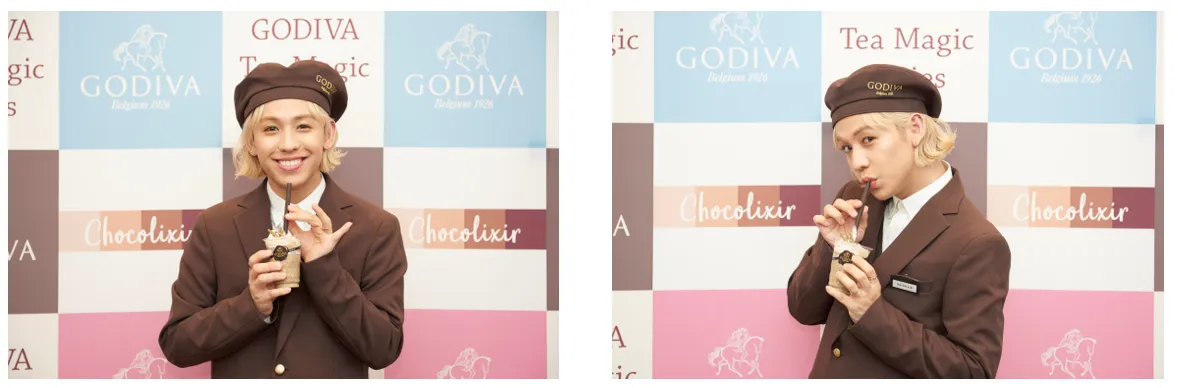 ゴディバ ショコリキサー<ティー マジック シリーズ>発売記念。 りゅうちぇる、ゴディバの制服姿で食レポに挑戦! 新商品にはりゅうちぇるも太鼓判!「誰もが一口飲んだらハマる!」 これからの“夢”や“パパ1歳”について語る限定インタビューも