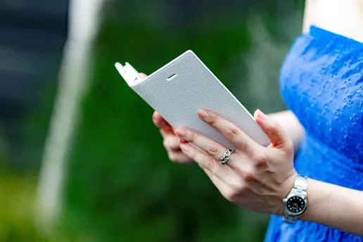 表地の革を極限まで薄く漉くことで、手帳型でも約15mmの薄さを実現しました。
