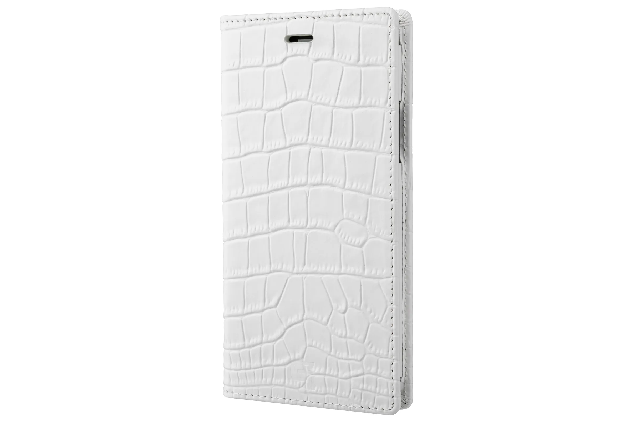 ホワイトの合成皮革を使用した、手帳型ケースです。夏のさわやかなコーディネートにぴったりです。シュリンク調の合成皮革を採用しているため、傷に強くお手入れが簡単です。