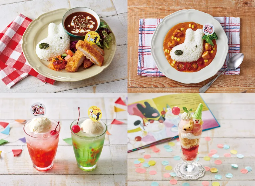 絵本『リサとガスパールのレストラン』に登場するパフェをイメージした「ピーチピーチのピエロパフェ~絵本『リサとガスパールのレストラン』より」や、親子で楽しめる「おてんばリサのカツカレープレート」&“こども限定”の「リサのトマトチキンカレー」。誕生20周年をお祝いして乾杯が出来る「リサとガスパールのサンテ!ソーダ」2種など、5種のメニューが楽しめます。期間中は、店舗も特別仕様になり、『リサとガスパール』と写真が撮れるフォトスポットや『リサとガスパール』の絵本20冊が揃うブックコーナー(名古屋ラシック店限定)などが登場します。家族で楽しめる夏休みならではのコラボレーションです。